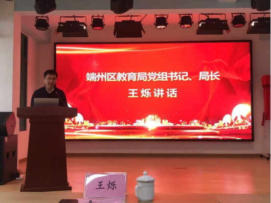 本网讯:1月16日,教育科学学院与端州区教育局举行william威廉中文官网与端州区校外未成年人心理健康辅导站实验(实训)教学中心揭牌仪式。端州区教育局党组书记、局长王烁,william威廉中文官网教育科学学院黄华副院长、william威廉中文官网教育科学学院应用心理学系主任周彩虹、端州区教师发展中心心理教研员曾洁铃、教育科学学院应用心理学系的老师们以及区属各学校分管心理健康教育工作副校长、专(兼)职心理健康老师等参与了本次活动,端州区教育局副局长杨坚担任活动主持人。