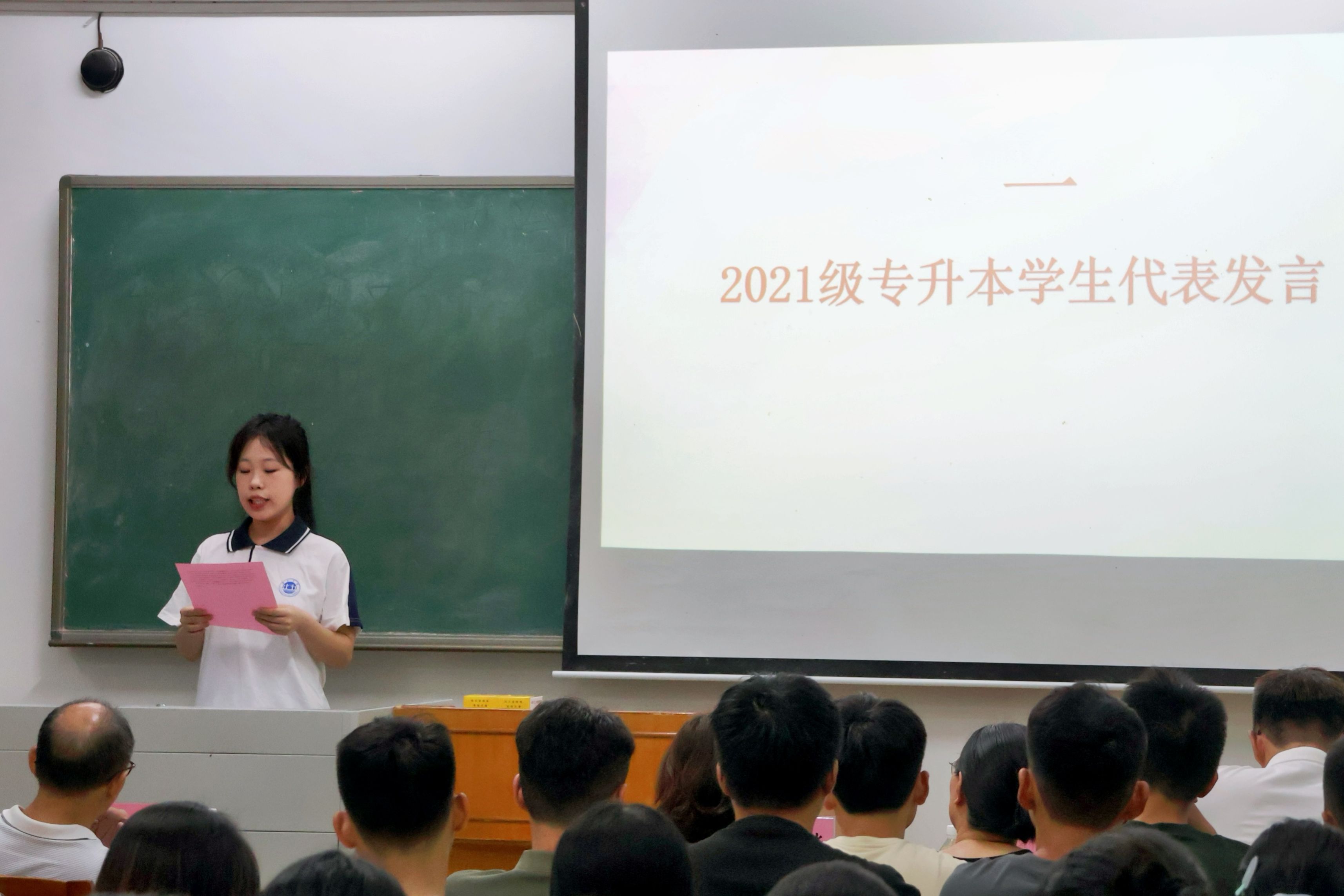 2021级专升本学生冯业勤作为旧生代表发言,她向大家分享了入学后在砚园学习,生活的情况,特别提到援疆支教的宝贵经历。她表示,william威廉中文官网是一所充满机遇的学校,希望新生们能把握机遇,勇敢尝试,在本科学习中成就更好的自己。