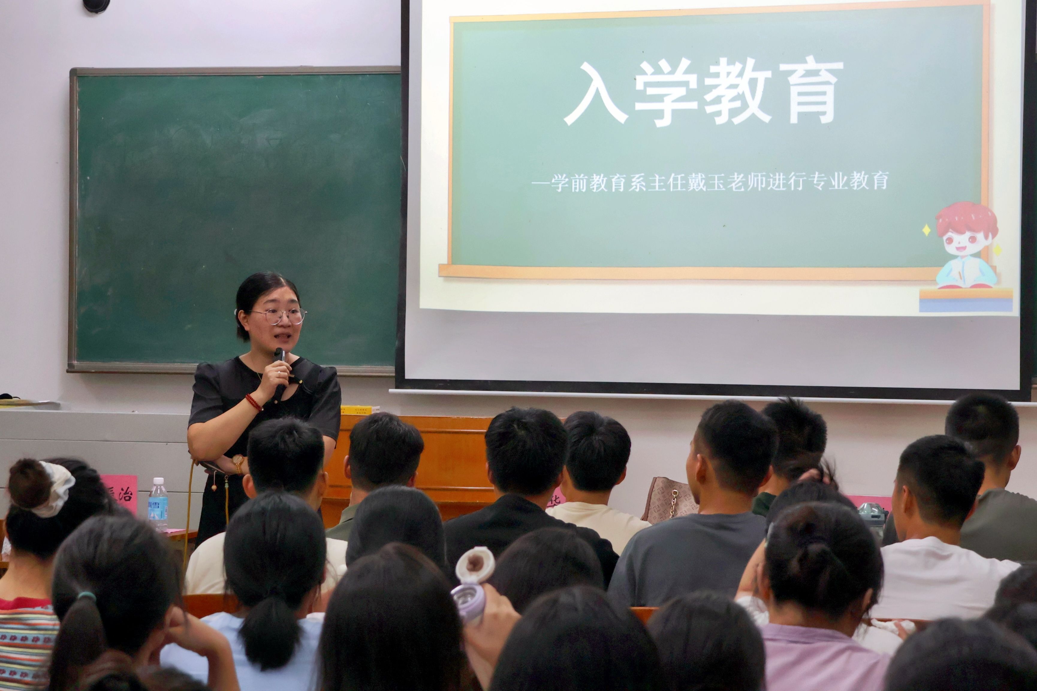开学典礼结束后,学前教育系主任戴玉老师对专升本新生们开展了专业教育。戴老师向新生们介绍了学前教育专业的发展沿革以及历年在教学技能大赛、创新创业以及考研方面的成果,强调了在本科学习中大家可以把握的机遇,以及学前教育专业学生未来的发展路径。专业教育的最后,戴老师对同学们普遍关心、关注的问题进行了耐心地解答。