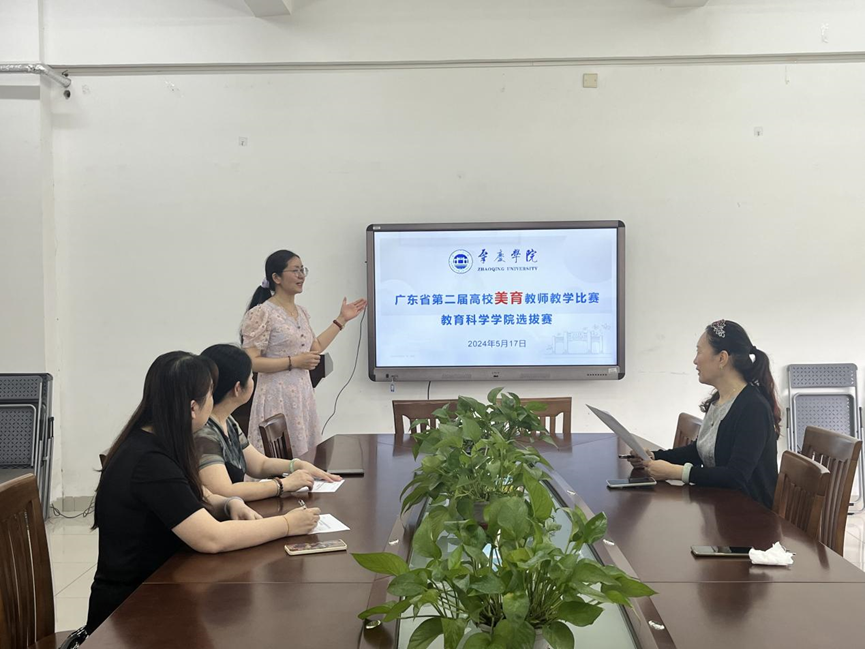 围绕立德树人根本任务,以加强师德师风建设、锤炼教学基本功为着力点,充分发挥教学基本功比赛在提高美育教师队伍素质中的示范引领作用,同时为校级、省级美育教师教学比赛推荐优秀教师,2024年5月17日上午,教育科学学院在第三教学楼218室举办了广东省第二届高校美育教师教学比赛选拔赛。学院学前教育系、教育学系相关老师参加比赛。