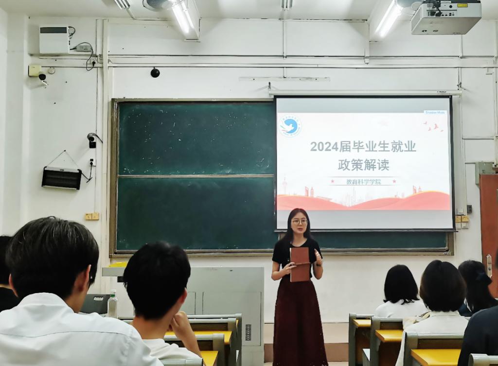 在毕业生们即将迈出校园、踏入职场的关键阶段,2024年4月26日,教育科学学院精心策划并组织了2024届毕业生“启航职场”主题班会。会议紧密围绕“就业政策解读”“就业安全教育”“简历制作及面试技巧辅导”等核心议题展开,旨在为毕业生们提供全面深入的就业指导,会议由年级辅导员陈慧妍主讲,我院学前教育专业与应用心理学专业的学生热情参与。