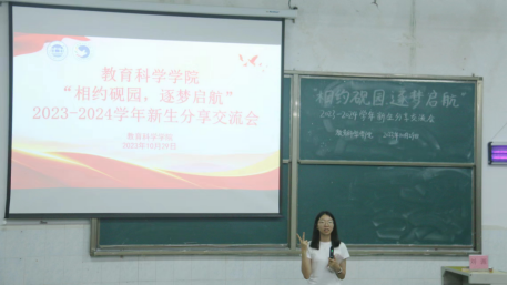 本网讯(通讯员/成依玲 郭紫欣 黄静文 责编/刘瑞雪)为帮助2023级新生尽快适应大学生活,了解专业前景,明确奋斗目标,教育科学学院团委秘书部分别于2023年10月24日和29日在主校区、星湖校区举办了两场主题为“相约砚园,逐梦起航”2023级新生经验交流会。