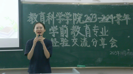 10月24日晚,2023级学前教育专业邀请2020级学前教育1班优秀学生代表陶晓华、李晓君到场分享经验,并邀请援疆支教优秀学生代表洪文怡以线上视频形式传授经验。她们分别从学生机构工作与学习的关系、省级师范技能大赛参赛的注意事项、援疆支教工作日常三个方面进行详细介绍和经验分享,并对新生普遍关注的问题进行解答。