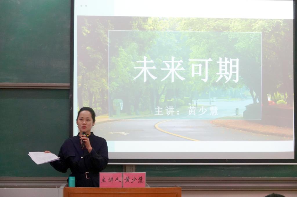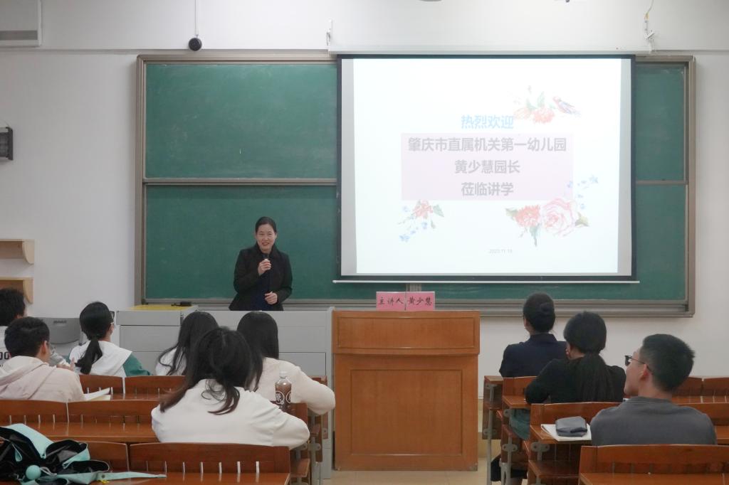 在学前教育专业会场上,市机关一幼园长、我院幼教专业校友黄少慧从幼儿教师的社会角色、如何蓄能、面试要点、奉献精神、新教师的角色定位等方面讲述了如何成为一名优秀的幼儿教师,她用生动有趣的游戏和令人深思的视频引导学生深度思考和积极感悟。