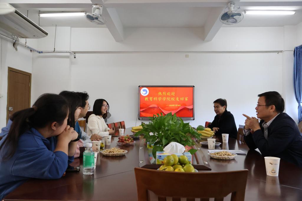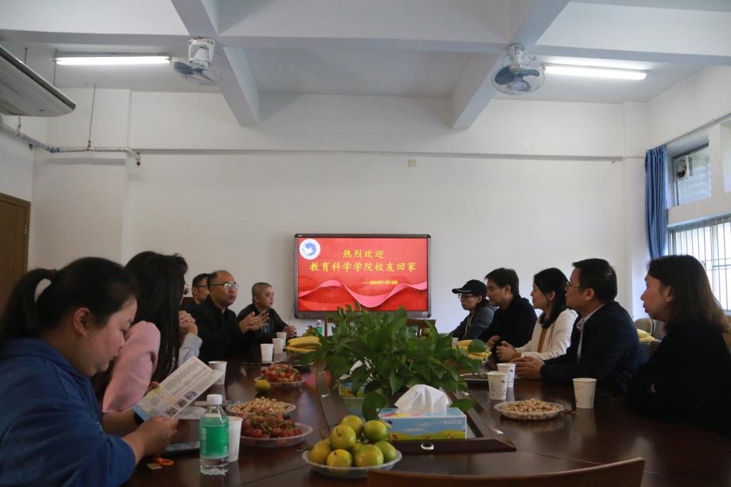 上午,阳光正好,微风不燥,教育科学学院党委副书记刘远君、各专业老师和辅导员在学院会议室迎接来自全省各地的60多位校友们并展开座谈。刘远君副书记代表学院对校友们回校表示热烈欢迎,向长期以来关心和支持母校发展建设的校友们表示衷心感谢,并介绍了学院、学校近几年取得的成绩和发展状况,希望校友们进一步关心和支持母校的发展。校友踊跃向老师们汇报了各自的发展情况,共忆往昔青葱难忘岁月,感恩母校的悉心栽培,感恩老师们的辛勤教导,感叹母校的快速发展和壮大,并由衷地为母校感到骄傲和自豪,同时纷纷表示,在今后的工作中,会更加关注关心母校的发展,更加努力地工作,与母校同进步,共发展,为母校争光添彩。