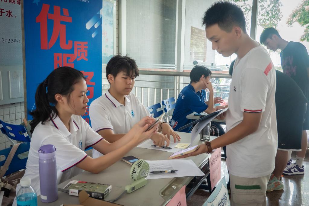 上午八点,在学校和学院的统筹规划下,志愿者联络点、新生报到点、迎新服务车等早已准备就绪,迎新工作人员全部就位。迎新现场井然有序,工作人员热情服务。为保障新生从入住宿舍到报到注册整个流程的顺畅,今年采用了“志愿者1对3联络+机动式任务分配的形式,切实让每个入学新生能有对应的志愿者向导。辅导员雷瑞虹、刘瑞雪等也在志愿者服务点上坐镇,随时准备处理突发事件。