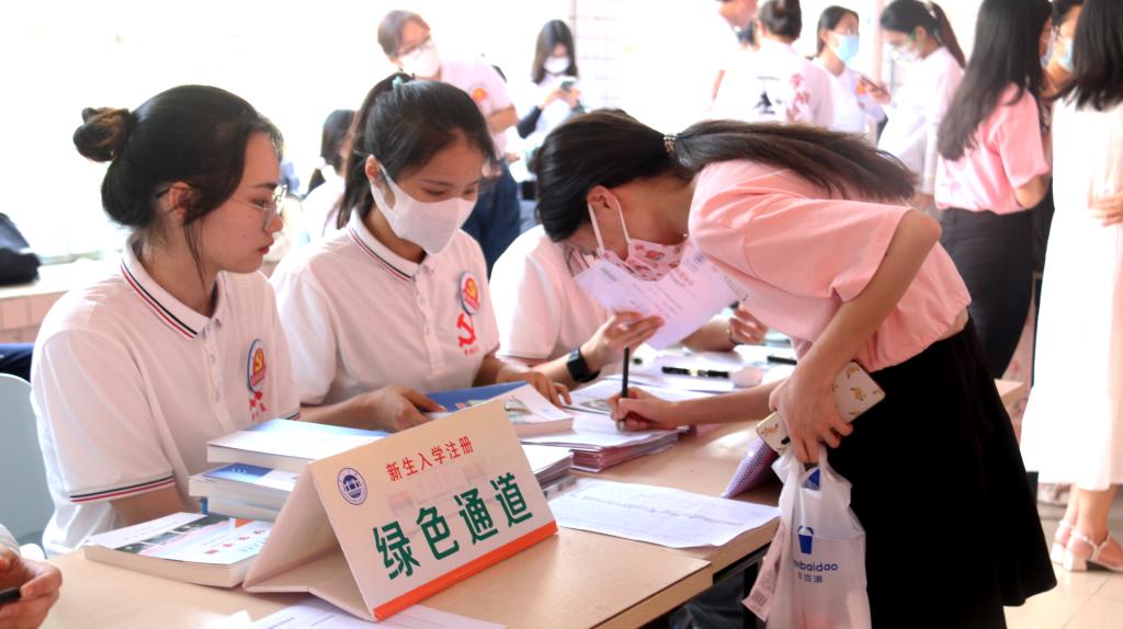 今年,主校区与星湖校区两个校区都迎来了教育科学学院的新同学。上午七点,迎新工作如期开展,学院迎新工作人员也在两个校区准备就绪。在这个特别的开学季,对于大多数新生及家长来说,虽然两个校区环境不同,但是他们所感受到的温暖却是相似的。由迎新志愿者为新生提供“点对点”服务。新生到达学校门口时,经过测量体温、行李消毒、查验粤康码和入校码、电子注册认证等流程后,再到学院报到点办理报到手续。整个流程简明清晰、便捷顺利。校园里随处可见热情的志愿者四处奔忙着,他们组织有序、分工明确、衔接紧密,协助新生完成各项报到手续。整个过程,工作人员以饱满的热情、认真的工作态度喜迎八方学子,向新生和家长展现了教育科学学院学子的青春活力和精神风貌,也让家长和新生对今后的大学充满信心。