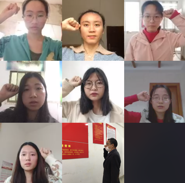2020年3月31日10:00,教育科学学院学前教育专业党支部举行线上专题学习会,深入学习习近平总书记给北京大学援鄂医疗队全体“90”后党员回信重要精神,并进行新一批预备党员入党宣誓仪式。