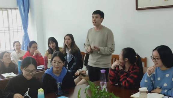 藏园长以提问“选择学前教育专业的初衷”来引出“幼儿园班主任角色思考”的话题,表示选择的初期目的并不重要,最重要的是后期的努力;并且通过讲解新手教师入职初期的困惑来指出学前教育专业学生需要提高专业技能和幼儿沟通艺术;通过分享故事《让自己跑起来》嘱咐学生:不同的态度决定不同的命运,要做好个人规划。在进行“幼儿园班级管理思考”的话题期间,藏园长带领学生进行一场游戏活动,调动全场教师、学生的积极性,活跃讲座氛围,在欢乐之余,更重要的是让学生明确:自己的原则要站稳,但在集体面前时刻以集体利益为重。最后以分享《农夫和驴》的故事来揭示因材施教、尊重幼儿身心发展规律的重要性。