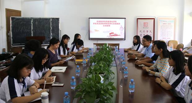本网讯(通讯员/陈颖棋 拍摄/刘晓彤)为深入开展“不忘初心、牢记使命”主题教育,10月25日,旅游与历史文化学院学生党支部与教育科学学院学生党支部开展联合党日活动。旅游与历史文化学院党委副书记陈军、教育科学学院党委副书记刘远君出席,两学院专职组织员、各学生支部书记,学生党员、发展对象代表约30余人参加了本次活动。