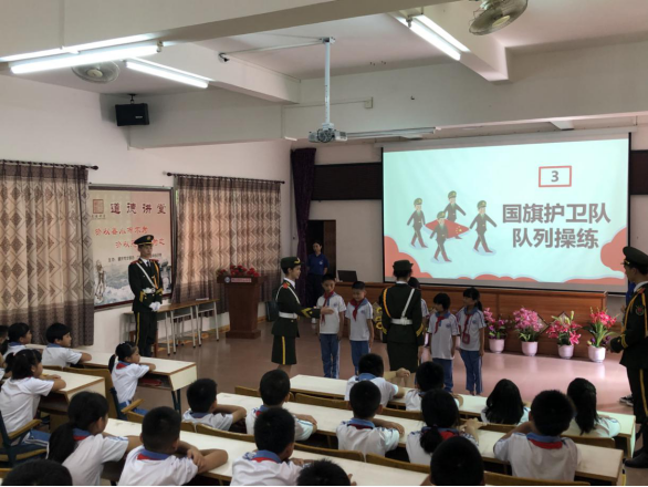 本网讯(通讯员阙玮奇)2019年7月12日,学校国旗护卫队、学院“三下乡”志愿者以及肇庆市广宁县横山镇中心小学全体师生于小学操场内举行了升旗仪式,并向部分少先队员代表开展了微思政课。据悉,7月11日下午,我院团委书记林舒莹带领“三下乡”队伍的6名队员前往该小学为微思政课进行充分的前期准备工作。