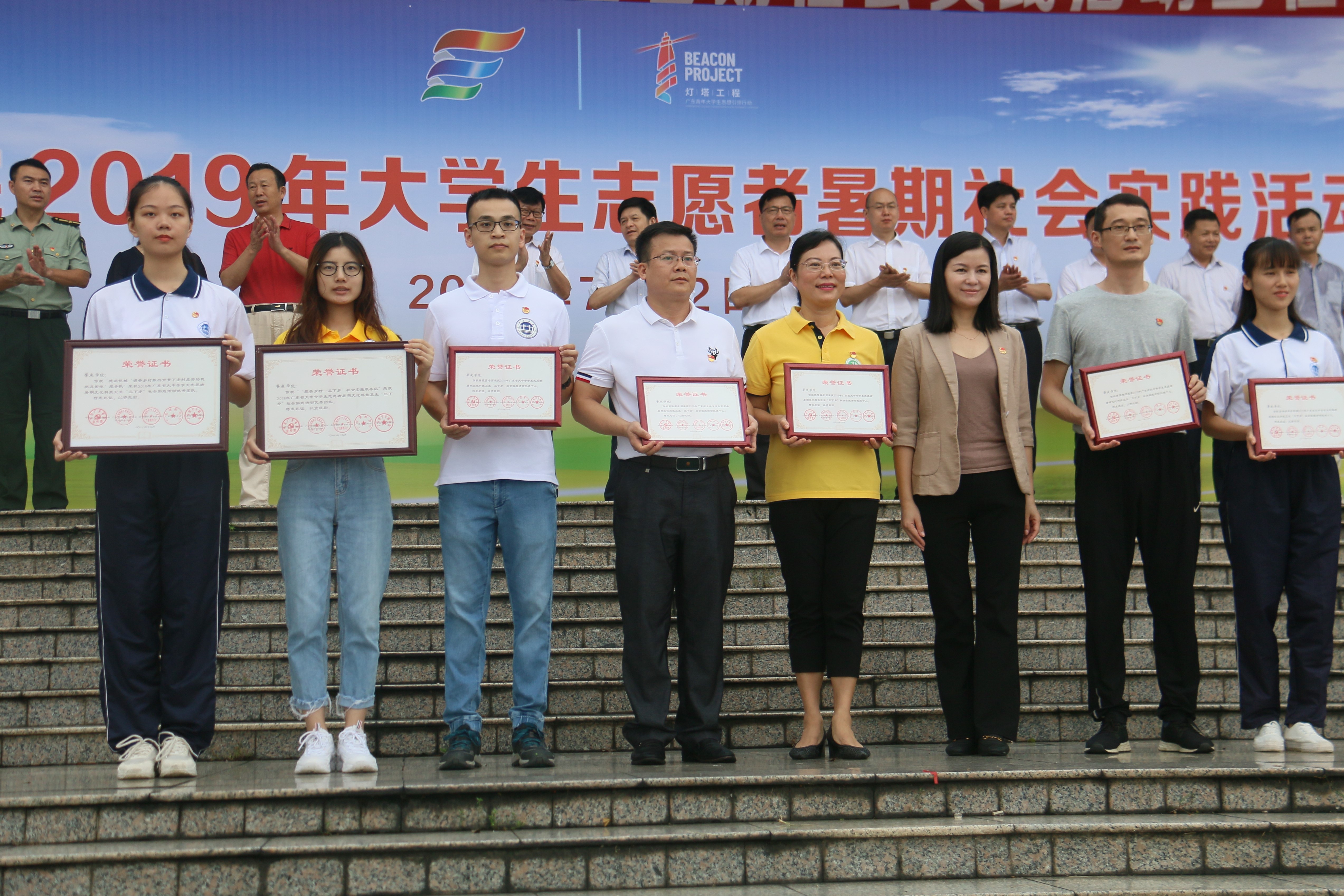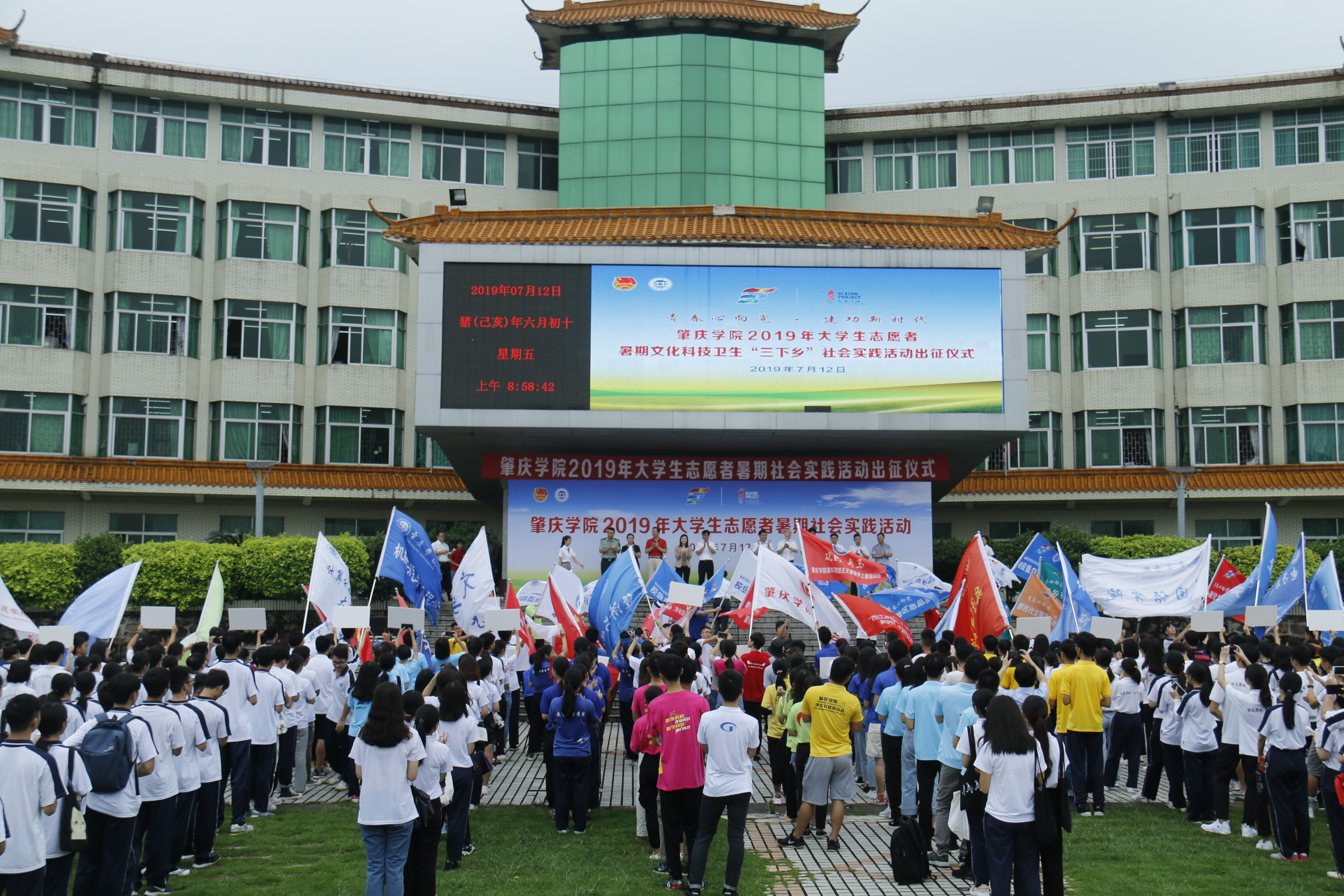 本网讯(通讯员 张立婷)为纪念建国70周年、建党98周年,我校围绕“青春心向党,建功新时代”和“携手奔小康,共筑中国梦”两大主题开展大学生暑期“三下乡”志愿活动。2019年7月12日上午,我校在国砚广场隆重举行了大学生志愿者暑期文化科技卫生“三下乡”社会实践活动出征仪式。学校党委书记曾桓松、党委副书记谢冠华、肇庆市团委书记唐莹等领导和各二级学院师生代表出席了本次仪式。本次出征仪式由校团委书记陈前主持。