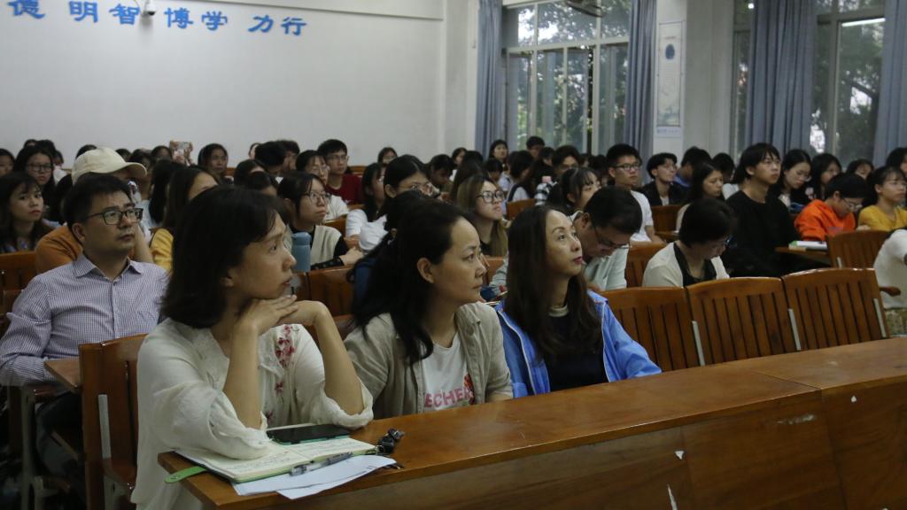 本网讯(通讯员/张云婷 责编/何秀华)20211013日下午,教育科学学院在第二教学楼206教室开展“学习习近平总书记在庆祝建党100周年大会重要讲话精神”专题宣讲活动。马克思主义学院院长曹顺霞教授担任主讲人。教科院党委谢佐永书记主持讲座,学院教师党员、学生党员及入党积极分子近100人出席。