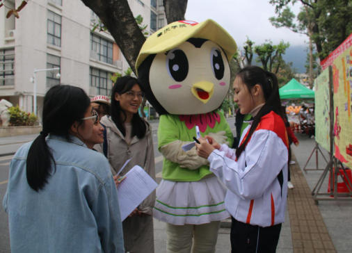 在活动现场工作人员对志愿活动成果展板进行了详细的讲解。首先工作人员向同学们介绍了教育科学学院团委青年志愿服务部以“践行志愿,服务他人”为宗旨展开的各项志愿活动,其中包括12.5国际志愿者日的编织中国结摆摊活动、三月雷锋日的趣味问答摆摊活动、广东省第十五届运动会志愿服务等特色活动,以及东岗幼儿园义教、社区创文、网络区域清扫等常规活动。虽然天气寒冷,但是同学们依旧热情参与到志愿活动成果展的活动中,在游戏中了解到志愿活动的相关知识,更深刻地理解到志愿服务的内涵。