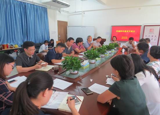 (教科院 讯)为进一步加强师德建设,提高我院教师的思想政治素质和师德水平,造就一支师德高尚、师风端正的高素质教师队伍,我院按照学校的统一部署,依据《广东省教育厅关于开展2017年师德建设主题教育月活动的通知》(粤教师函[2017]74号)有关要求,于2017年9月13日下午,开展了以“立德树人,做好学生引路人”为主题的师德师风建设交流会活动。校党委委员、校办主任朱为鸿莅临我院参加了本次交流活动。