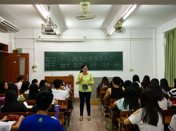 交流会上,各班班主任都分别在各班发表了讲话,对新生进行了入学教育及大学生活的相关注意事项教育。其中,15小学教育班的班主任戴玉老师幽默亲切的对小学教育专业做了全面的分析,并从“启梦,筑梦,圆梦”三个方面提点新生应该正确的享受大学生活,对自己负责,做一个真正大学生。各优秀学生代表从考研、学习、机构以及大学生活等方面同新生们分享了相关经验,预祝新生们能有一个美好的大学生活。他们真诚质朴的话语给台下的新生留下了深刻的印象。在互动交流环节,新生反应积极,热情地和师兄师姐们讨论在一起,场面轻松有趣,将当晚的交流会推向了高潮。