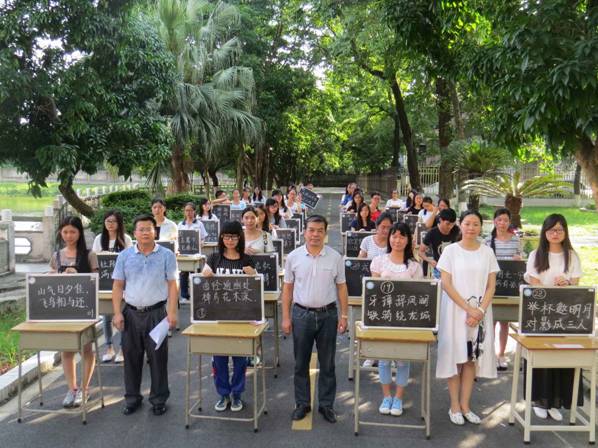 为加强学风建设,营造浓厚的学习氛围,全面推进素质教育,进一步提高学生的综合素质,由校团委主办,教育科学学院承办的“星湖杯”粉笔字大赛于2015年6月3号下午在星湖校区兰蕙湖边的校道上举行。出席本次比赛的领导有星湖校区管理办公室主任余淦新,教育科学学院党委副书记刘远君,校团委办公室主任杨琼老师等。