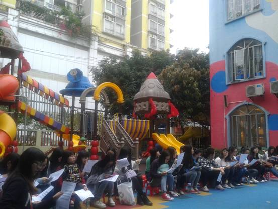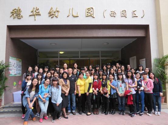为使学前教育专业的学生了解幼儿园的教育、教学与管理工作的特点,进一步提高专业技能,为将来从事学前教育工作积累经验,2015年3月30日,由学前教育系李晖、孙丽琴老师带队,学前教育专业2012级和2013级100名同学赴广州市海珠区穗华幼儿园进行为期一天的跟岗实习。