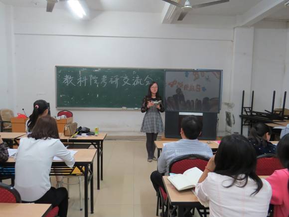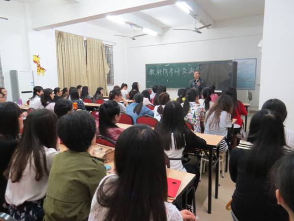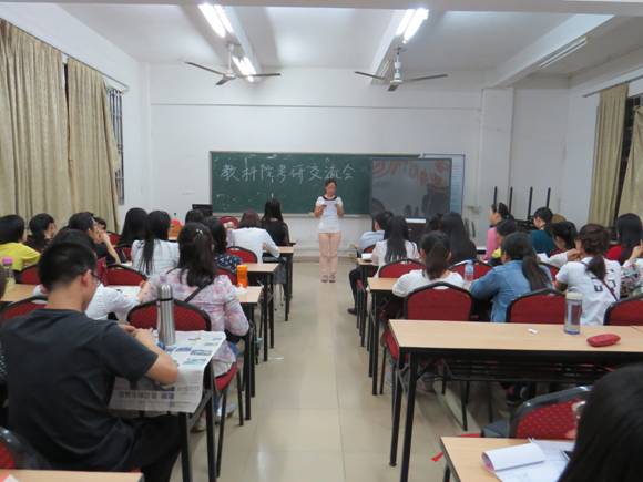 为了进一步提高我院学生的考研热情,明确考研目标,掌握考研技巧,了解更多的考研信息,教育科学学院于4月15日晚上7:00在鲁迅楼演示室举办了一场考研经验交流会。会上邀请了11学前教育本科班的袁勤勤、毛乐和丁晓彤三位同学,她们今年分别被广东技术师范学院、西华师范大学、上海师范大学录取。借此机会为有考研意向的学前教育、小学教育专业的师弟师妹们传授经验。
