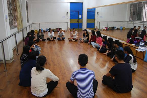 本网讯(通讯员 许晓虹 邓丽桢 吴旭辉)2015年4月23日晚上六点,教育科学学院雷洁老师组织院全体非毕业班的心理委员共21人进行以“舞动团体”为主题的团辅活动,出席本次活动的嘉宾有何秀华老师。