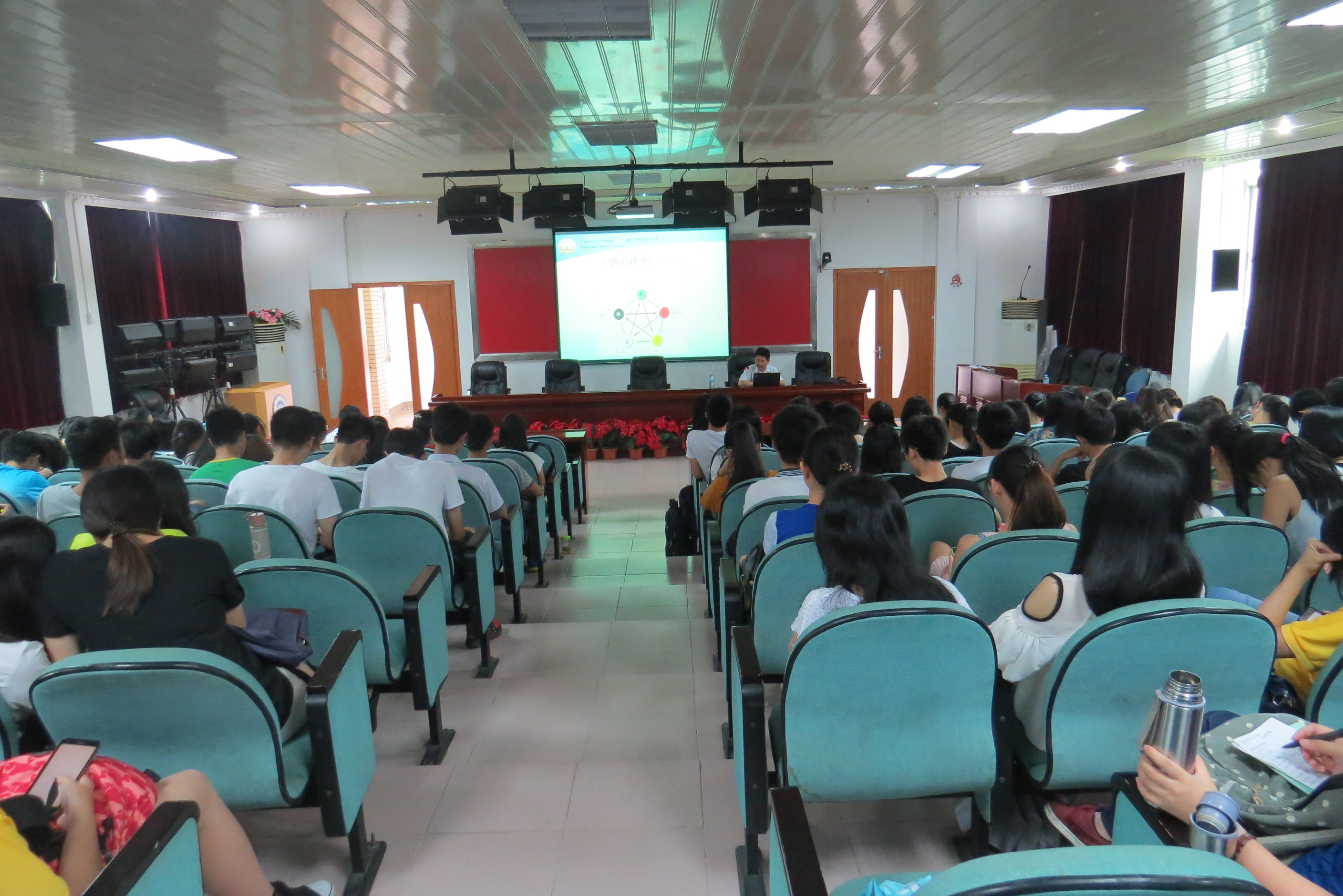 王教授从中医心理学的角度对“五行情志学说”进行了生动详实的阐述:人的情绪分为五种基本情绪,此五种情绪因四种激素:NE、DA、5-HT、Ach引起,通过案例对这五种情绪作了进一步说明。此外他介绍了一些近期研究情绪方面的学术性文章,激励师生作论文时应多结合正在研究的一些心理学问题,鼓励师生学好情绪心理学,并应用在在今后的工作和生活中,成为驾驭情绪的主人。