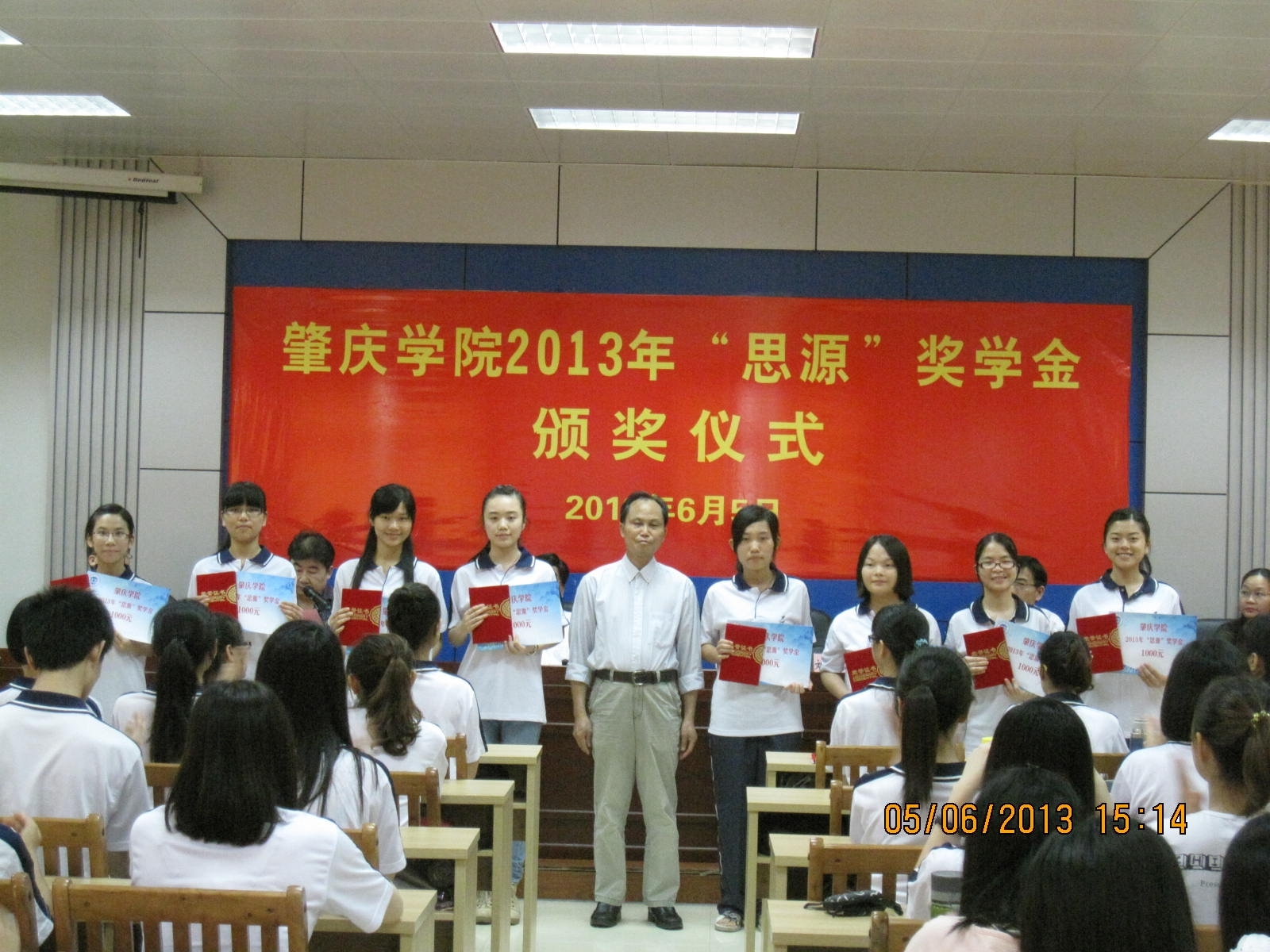 本年度总计33人次获得了该奖项。颁奖典礼上,徐杰书记首先介绍了 “思源”奖学金的历史和宣读了获奖学生名单。随后,各位领导向2013年获得“思源”奖学金的同学进行了颁奖,并对其寄予了深切厚望。在场同学以饱满的热情做出了积极的回应。