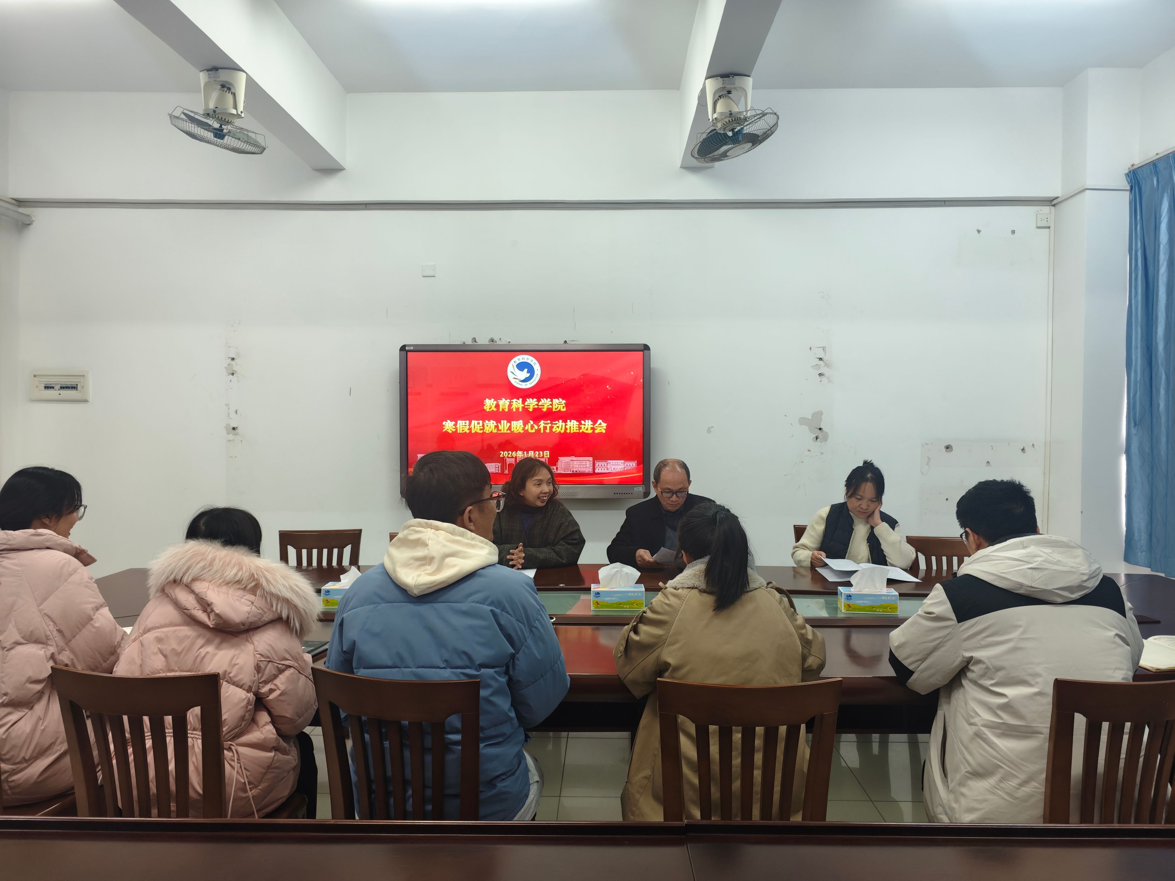 为深入贯彻教育部及学校关于 2026 届高校毕业生就业工作的部署要求,充分利用寒假窗口期,全力促进毕业生高质量充分就业,2026年1月23日下午,教育科学学院于第三教学楼507会议室召开寒假促就业暖心行动推进会。