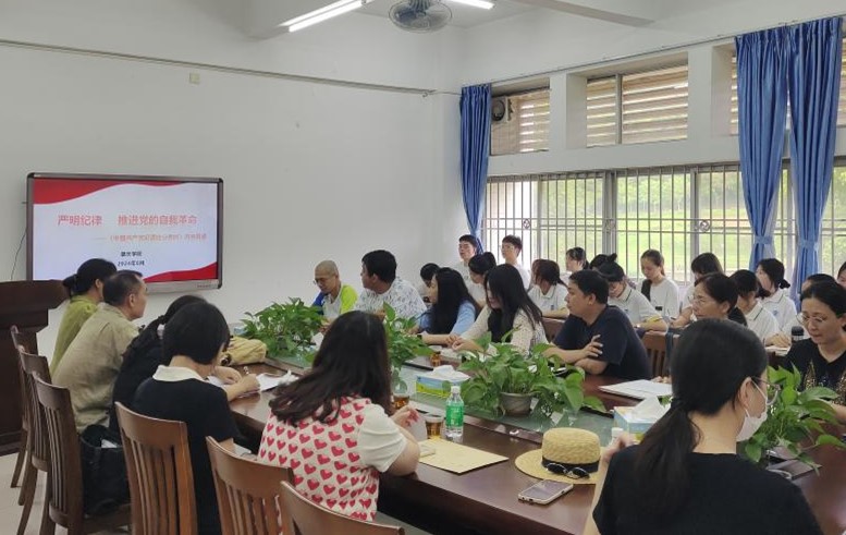 为深入开展党纪学习教育,全面贯彻落实新时代党的纪律建设新要求,进一步强化党员干部的纪律观念和规矩意识,推动全面从严治党向纵深发展,2024年6月26日下午,教育科学学院在第三教学楼218室举行了党纪学习教育宣讲。本次活动由马克思主义学院教师刘琼主讲,教科院近50名师生党员参与。