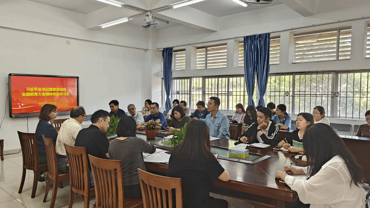 随后,蔡书记带领大家深入学习了全国教育大会精神,重点解读了大会提出的“立德树人”根本任务和“教育现代化”战略目标。他强调,我院要结合实际,结合我院开展的“三所学校”和县中质量提升工作,锚定推进教育高质量发展目标,将大会精神落实到教学、科研、管理等各个方面,努力培养德智体美劳全面发展的社会主义建设者和接班人。