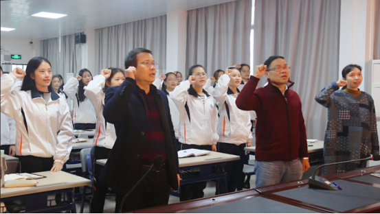 最后,全体党员合唱《国际歌》。这是我院学生党员首次在学校“初心堂”举行入党宣誓,希望同志们不忘初心,牢记使命,充分发挥党员的先锋模范作用,无愧于共产党员的光荣称号。