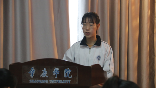 接下来,10名新发展党员依次做党旗下演讲,她们的演讲表达了对党的热爱、对入党的热切追求,并在党旗下做出完善自我、服务他人、追梦奔跑的庄严承诺。何秀华老师在总结中勉励学生党员们一方面党员要有所追求,甘于吃苦、勇于追梦;另一方面要有所坚守,要有四个自信,站稳立场。