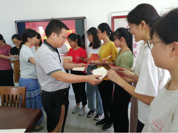 会上,刘远君书记代表学院,向新发展的预备党员赠送了政治生日贺卡、党徽和党章,把党组织的关心和温暖传递给党员。随后,刘书记向党员们回顾了党的峥嵘历史,阐述了98年前中国共产党从53人发展到如今9千万人,其中的历史选择的必然性。刘书记进一步强调了带班党员工作的重要性:带班党员是学校和新生之间沟通的桥梁,要做好上传下达的工作。书记还对带班党员提出了要求:要有责任感、使命感和荣誉感;要做好充分的工作准备,深入一线,在19级新生中起模范带头作用,散发正能量。