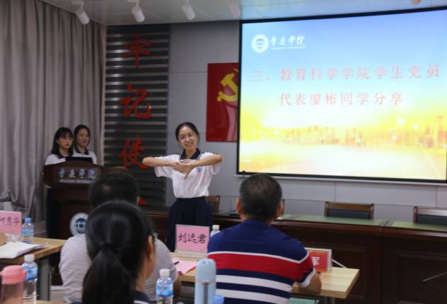 活动在教科院会议室拉开序幕,双方师生代表互相握手认识。教科院先向大家分享了学生微电影作品《党·带班·青春》,该作品展现了学院网络思政工作的成果,也从一个崭新的角度展现带班党员的魅力。随后师生党员一行到艺术楼舞蹈室在观摩学前教育专业的学生舞蹈练习,了解学前专业学生课余自觉的专业训练情况。