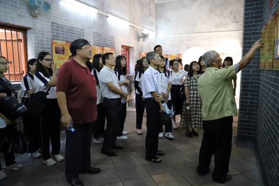 教科院一行先参观了高要区鳌头初心堂,了解鳌头抗日历史,谢佐永书记带头与党员们重温党史;在初心堂中,由谢佐永书记领誓,全体党员重温入党誓词,随后,众人观看党的专题教育片,进一步了解“红船精神”,以及共产党员初心使命的内涵。在激昂的伴奏声中,全体合唱《歌唱祖国》。随后,教科院一行走过蜿蜒的乡间小道,参观首届高要县人民政府成立旧址,了解鳌头村大族的良好家风。在78岁老党员热情好客而充满自豪的讲解中,大家感叹和平发展的幸福生活要靠一代代人用鲜血和汗水换来;同时也感叹,在乡村振兴战略之下,农村人民的幸福感不断提升。