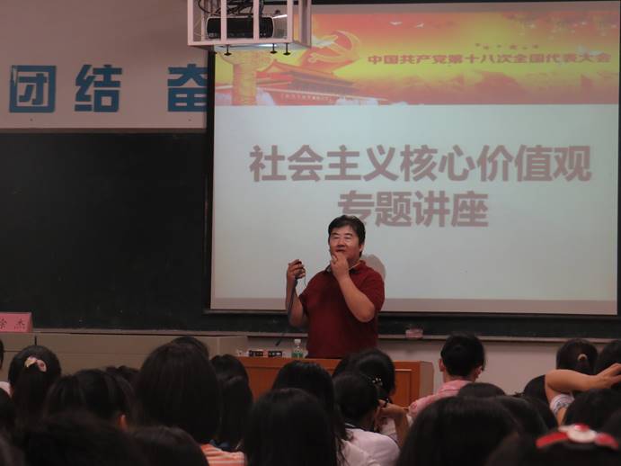 徐杰书记首先为学生党员解读了社会主义核心价值观——公民层次的价值要求,即:爱国、敬业、诚信、友善。他指出,我们需要通过构建核心价值观来整合多元社会意识。对于如何践行社会主义核心价值观,徐书记对学生党员们提出了三点要求:一是为中华民族伟大复兴而努力奋斗。要做到脚踏实地,开拓创新,把学习和工作做好,无愧于时代赋予的使命;二是要不断传递正能量。要率先践行社会主义核心价值观并以之来影响身边的同学;三是明确“党纪严与国法”。作为学生党员要以身作则,要以严格的党纪来严格要求自己,并学会遵法、守法。