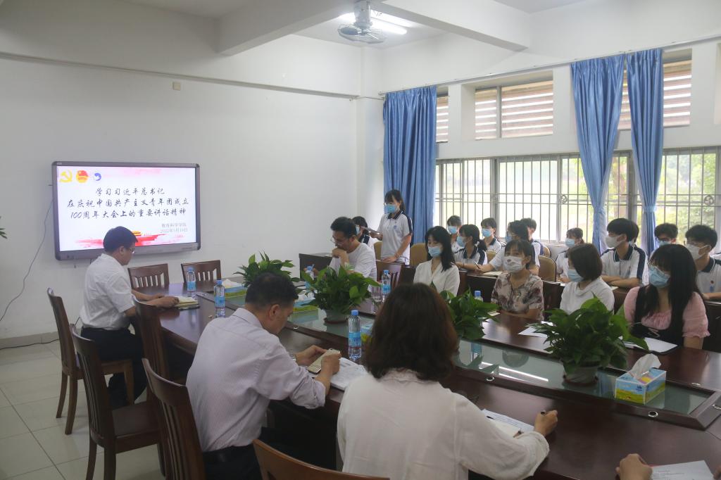 5月10日晚上,教育科学学院组织青年师生开展座谈会,认真学习习近平总书记在庆祝中国共产主义青年团成立100周年大会上的重要讲话精神。教育科学学院团委书记梁少辉出席本次座谈会。