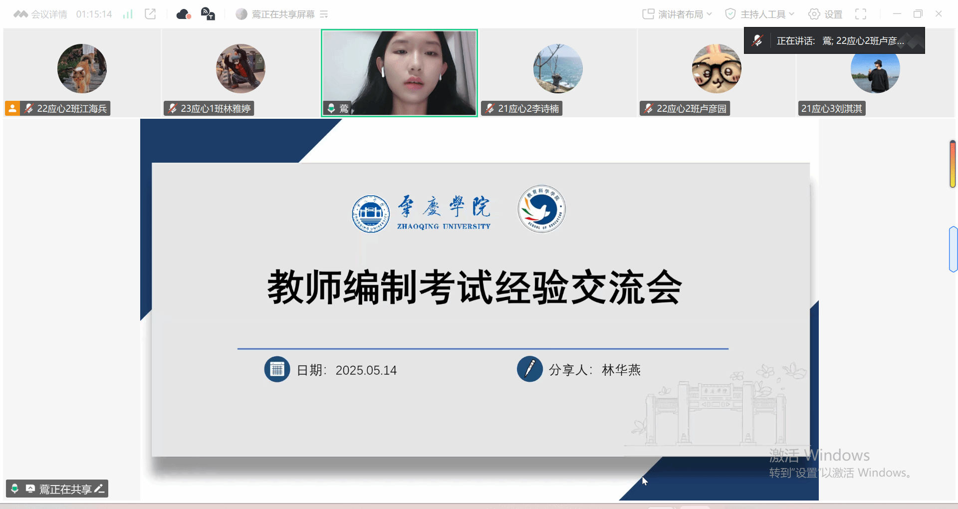 考编方面,林华燕从编制考试概况和考试内容两方面出发,强调就业信息群、公众号等信息获取渠道的重要性。梁婉仪则深入分析编制、合同工、临聘在职业发展等方面的差异,详细讲解了考编形式和备考方法。她表示,考编是一场马拉松式的考验,建议同学们从大三下学期开始备考。