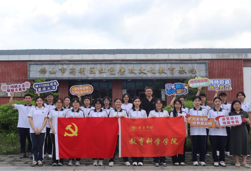 为加强党员廉洁自律意识,筑牢清正廉洁防线,2025年5月21日,我院应用心理学专业学生党支部与小学教育专业学生党支部赴佛山市高明区红色廉洁文化教育基地、谭平山故居和三谭革命事迹展览馆,开展联合主题党日活动。党支部书记陈慧妍、夏长洪,副书记刘瑞雪及2021级、2022级学生党员代表共22人参加了此次活动。