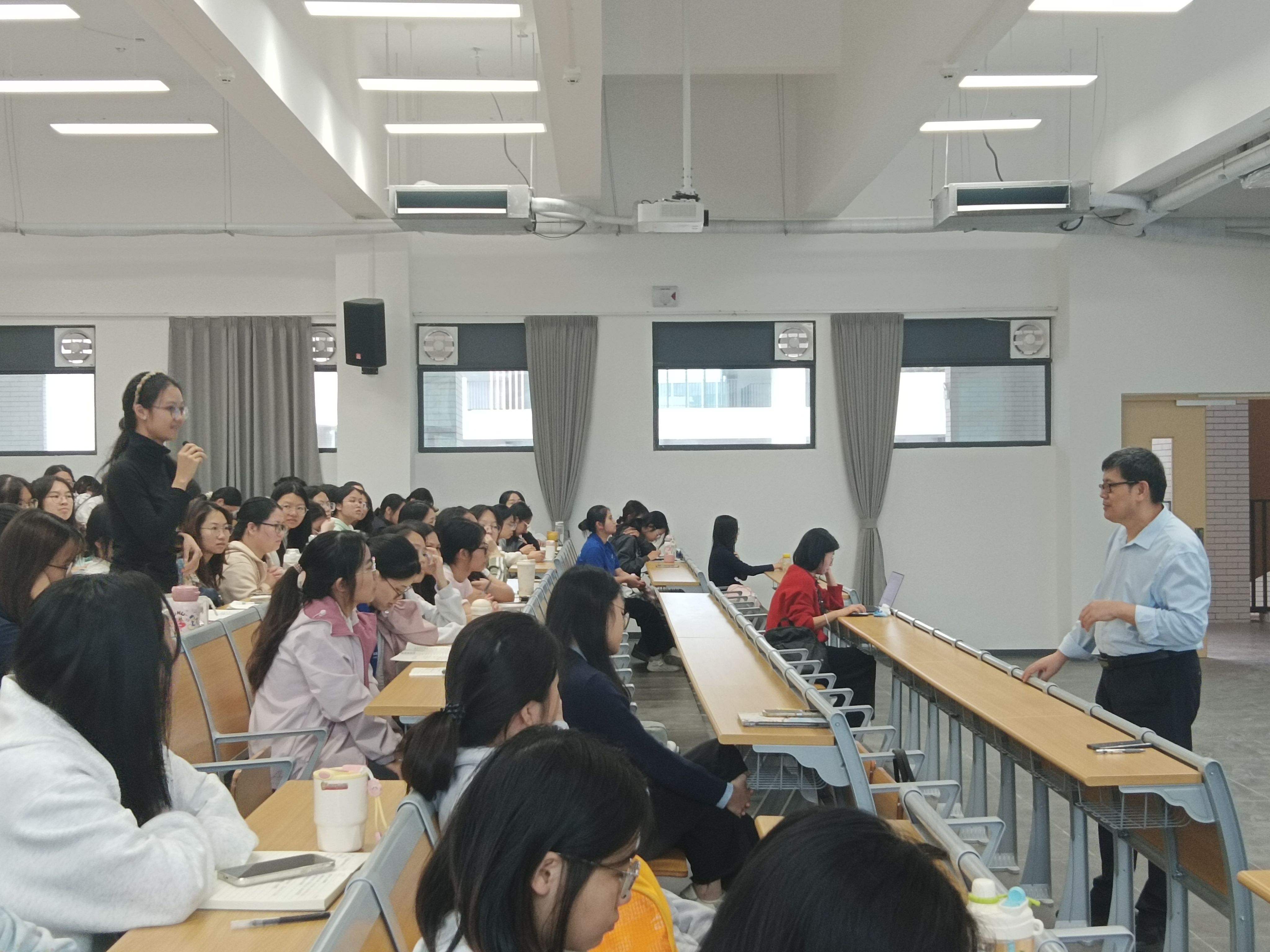 在互动环节,同学们积极提问,慕教授诚挚回答并对大家的困惑提出建议。本次讲座内容丰富、见解深刻,不仅帮助师生们厘清了新课标下有效教学的核心逻辑,更启发了他们对如何通过合理规划和策略提升教学效率进行思考和探索。