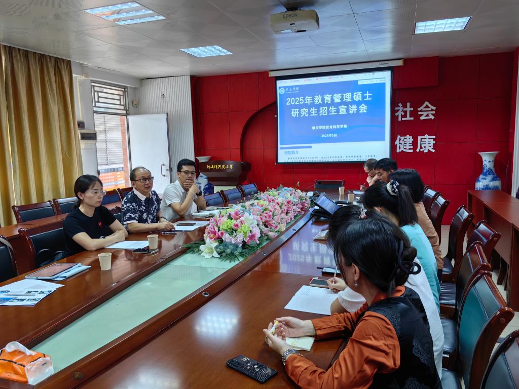 随后,蔡振治就2025年教育管理硕士研究生招生进行了宣讲。他向在场的教师详细介绍了学院的基本情况、研究生的培养目标及要求、报考条件等相关信息,引发了现场热烈的讨论。此次招生宣讲不仅增强了教科院与一线基础教育阶段学校的联系,更旨在吸引对教育事业充满热情、具备潜在教育领导力和创新精神的学生报考教科院教育管理研究生。