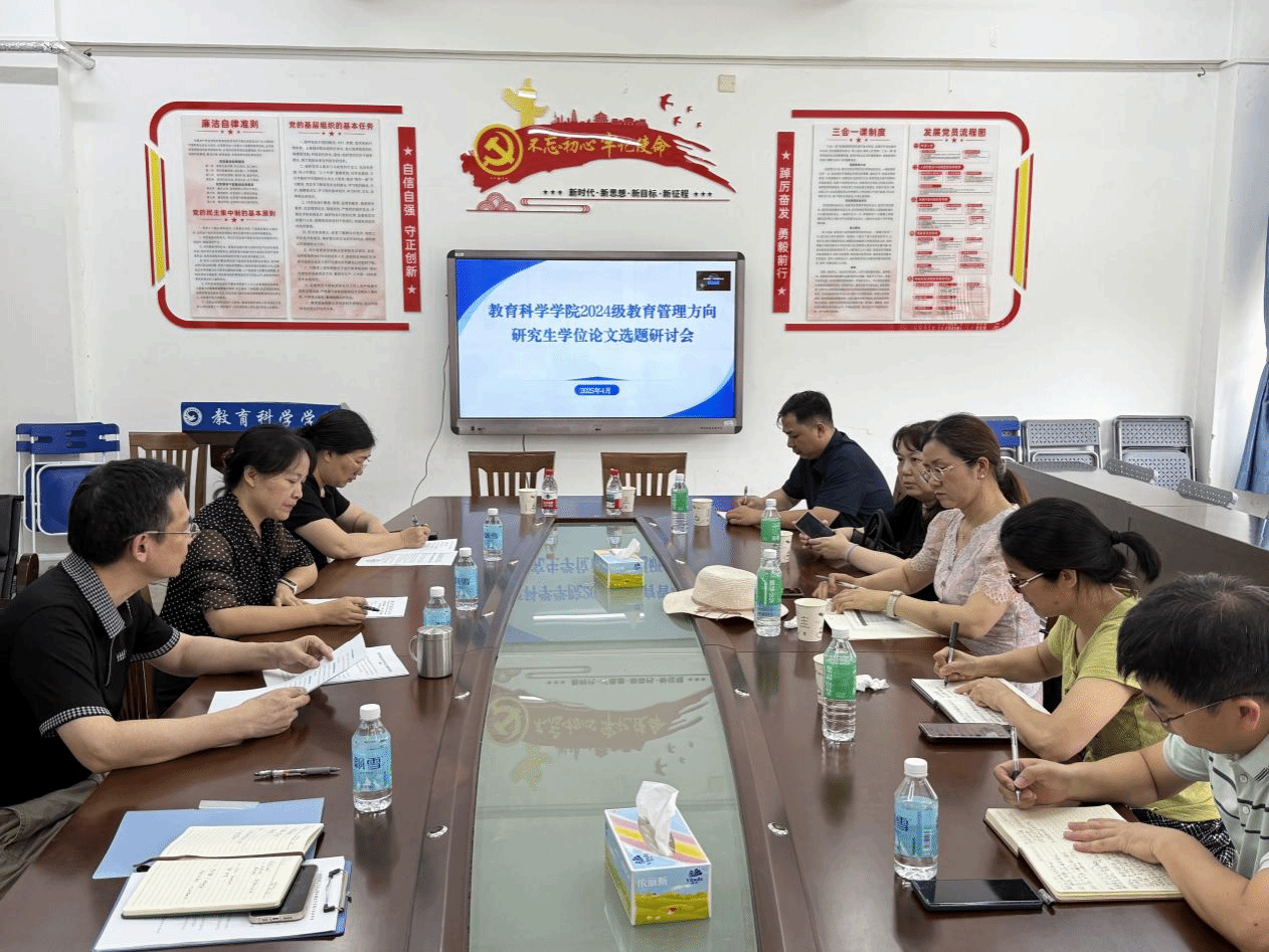 4月28日,教育科学学院组织2024级教育管理方向研究生开展了学位论文选题研讨会。学院院长文雪、全体硕士研究生导师与2024级教育管理方向全体研究生参加,会议采取线上与线下同步进行的方式,由学院副院长曾苗苗主持。
