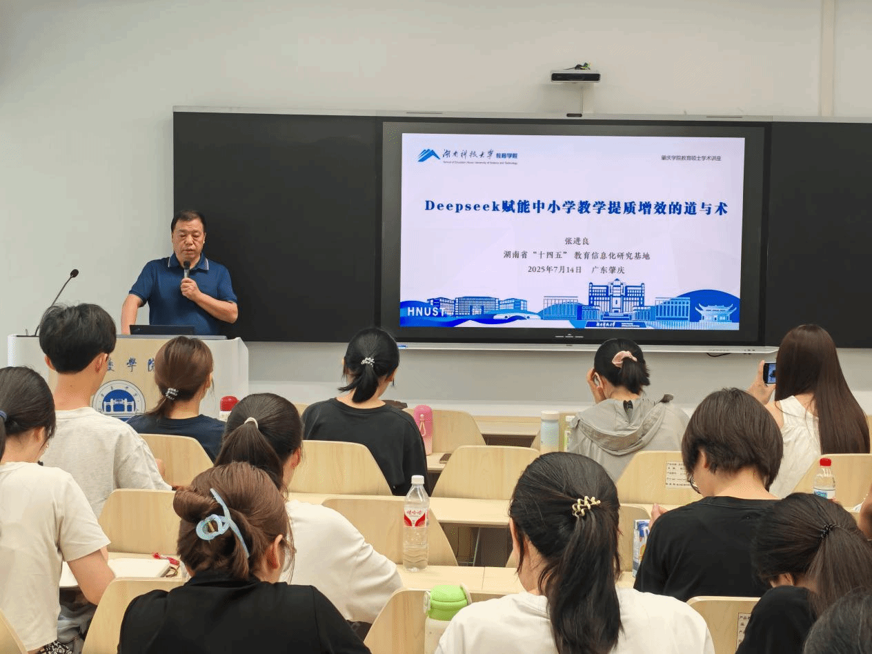 7月14日,教育科学学院特邀湖南科技大学张进良教授莅临举办题为“Deepseek赋能中小学教学提质增效的道与术”的专题讲座。2024级教育硕士及部分青年骨干教师共同参与了此次讲座。