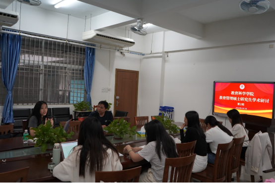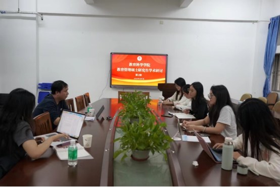 4月7日,教育科学学院举行了第二期教育管理硕士研究生学术研讨会。唐辉老师、向璐老师和23级全日制教育管理硕士研究生参与了本次线下会议,3名23级非全日制教育管理硕士研究生以线上会议形式参与,本场会议由研究生赵严严主持。