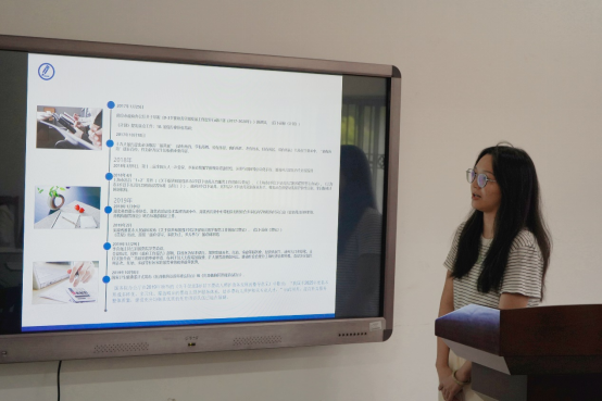 向璐先分析了两位同学的汇报情况,提出文献以及数据分析的汇报要规范统一,可借助文献整理的相关软件以表格的形式呈现。她还提出文章的撰写要理论与实证相结合,通过实证数据的支撑增强研究成果的说服力。比如,访谈后使用德尔菲法进行专家咨询,以更全面的视角进行质性和量化的混合型研究,同时建议大家熟悉使用数据分析技术软件,吸取经验与收获,提高专业学术研究的能力。