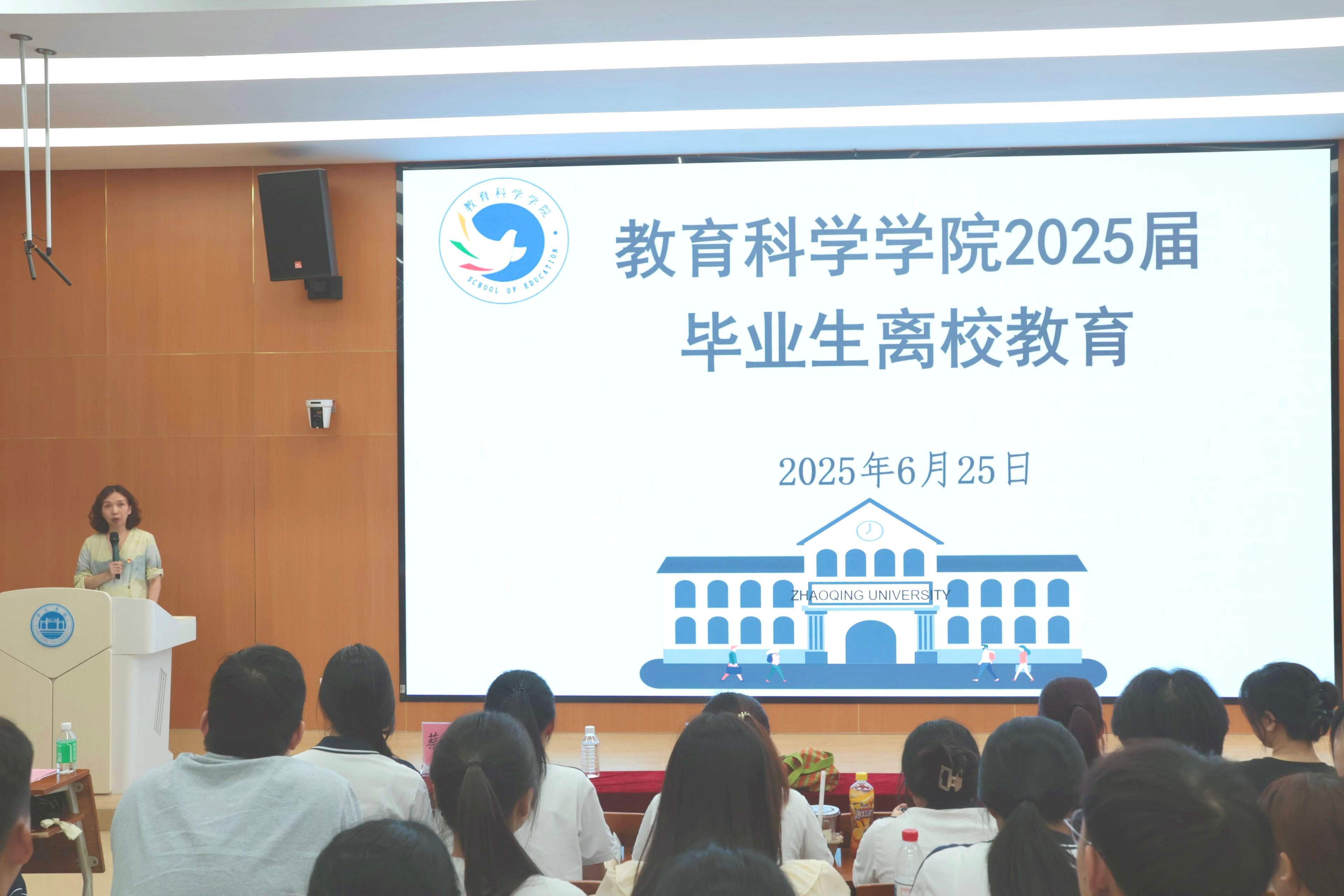 本网讯(通讯员/范梦洁 责编/雷瑞虹) 2025年6月25日,教育科学学院在第二教学楼704教室隆重举行以“青春不散场,梦想正启航”为主题的2025届毕业生离校教育活动。学院党委书记蔡振治、副书记何秀华、2021级辅导员雷瑞虹及近300名毕业生出席。