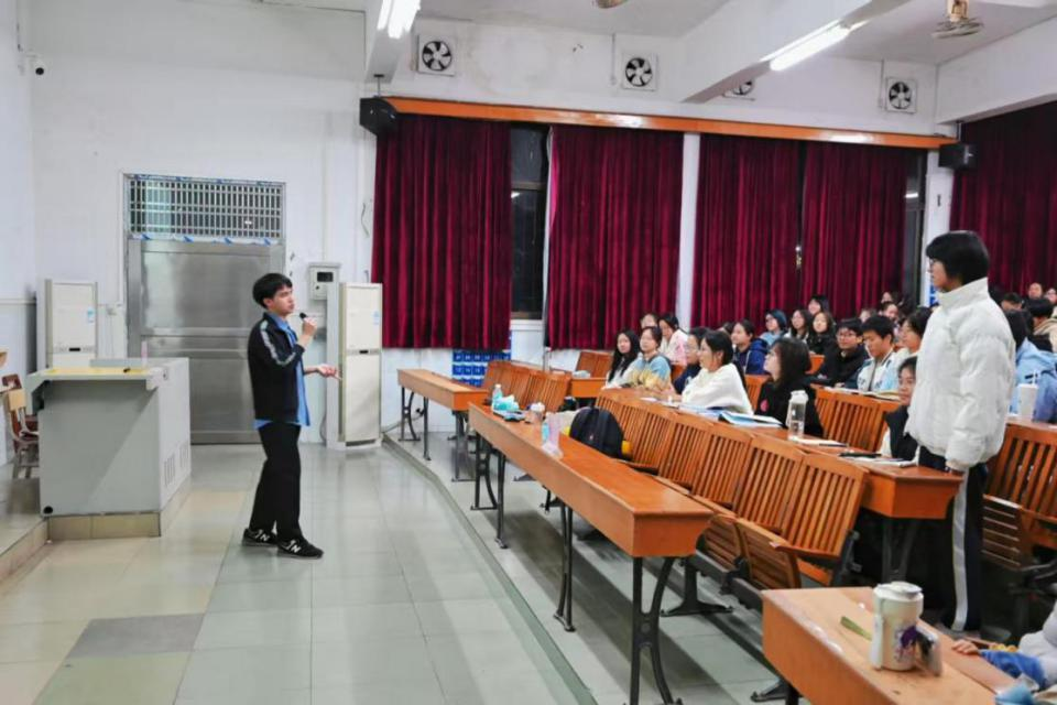 本网讯(通讯员/冯煽梅 责编/刘瑞雪)为提升同学们的科研能力和创新精神,2024年12月17日晚,在星湖校区17-108教室举办了教育科学学院2024年新生科研项目申报与竞赛经验交流分享会。本次活动特邀2024届应用心理学专业毕业生、现就读于澳门城市大学应用心理学硕士的董高志同学主讲,辅导员刘瑞雪老师出席此次交流会。