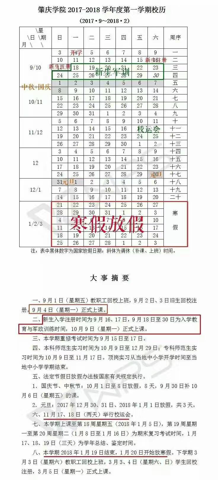william威廉中文官网2017-2018学年度第一学期校历